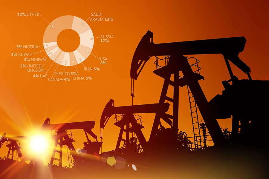 Oil production data: Worldometer (2005-2016), EIA (2017); Reuters (2018; 2020; 2024); Columbia School of International and Public Affairs (2019); TAdviser (2021); CEIC Data (2022-23); Bloomberg